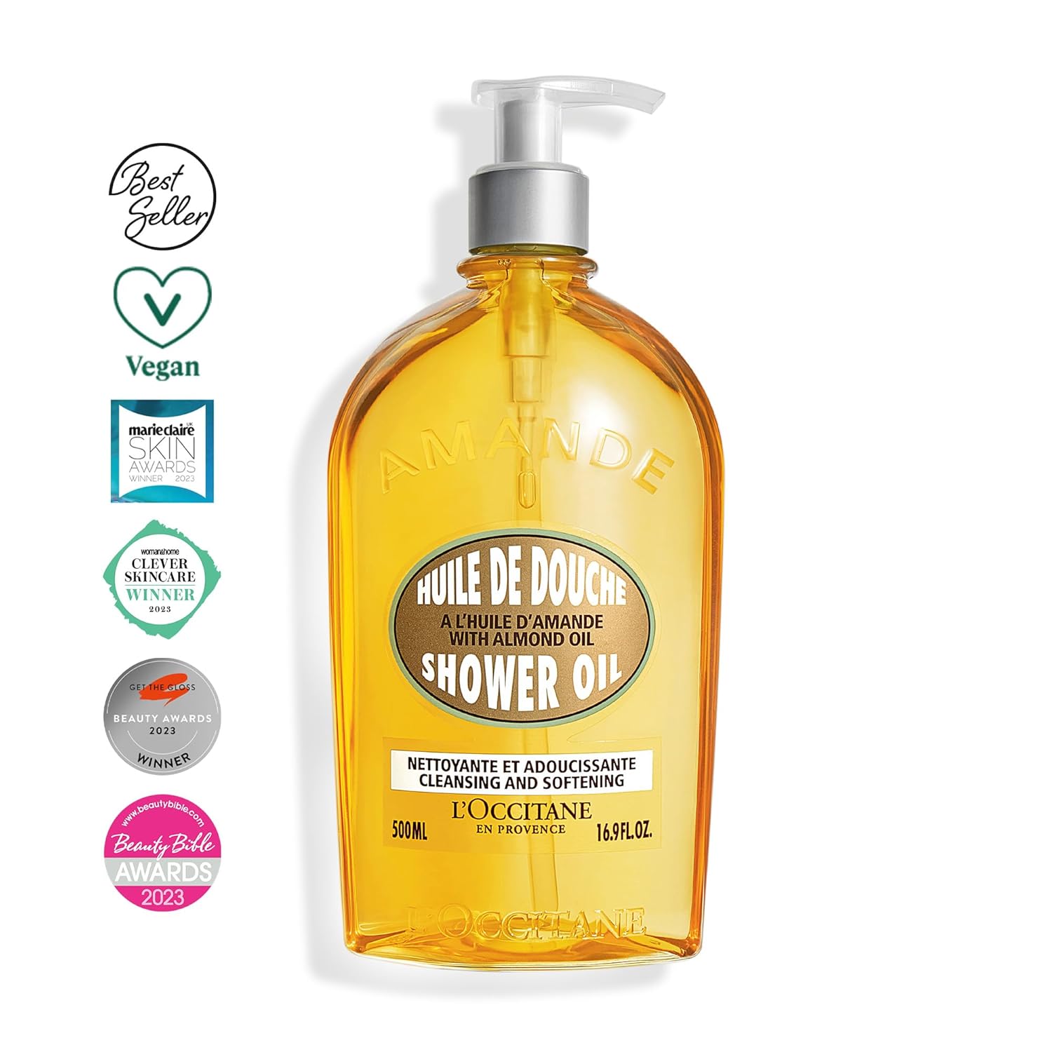 L’Occitane. Cleansing And Softening Refillable Shower Oil With Almond Oil 16.9 oz / 500 mL