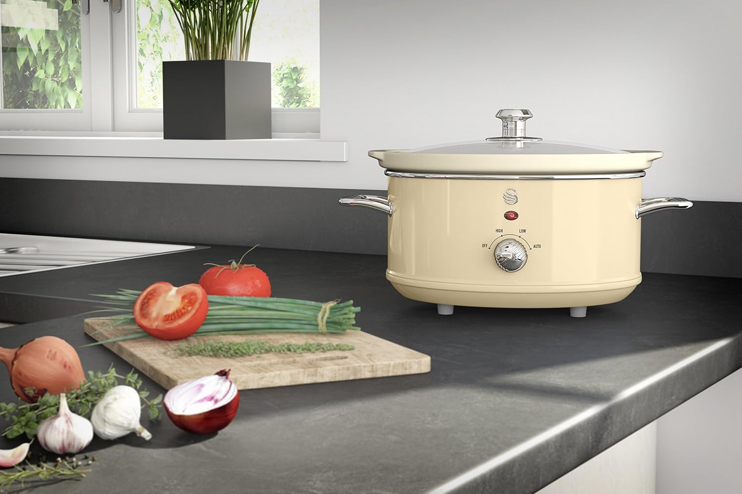 Equal parts as stylish as functional the Swan Retro range provides top-level design with impressive functionality. Making a beautiful feature in any kitchen, the Swan Retro 3.5 litre slow cooker, in a chich vintage cream colour, with cream ceramic inner pot, and chrome detailing adds a touch of vintage cool to your kitchen countertop. Inspired by the retro styling of 1950’s design, the award-winning Swan Retro range is the ideal choice for any style-conscious homeowner. Matching items are available as part of the Swan Retro range, allowing you to match all your kitchen appliances and homeware.