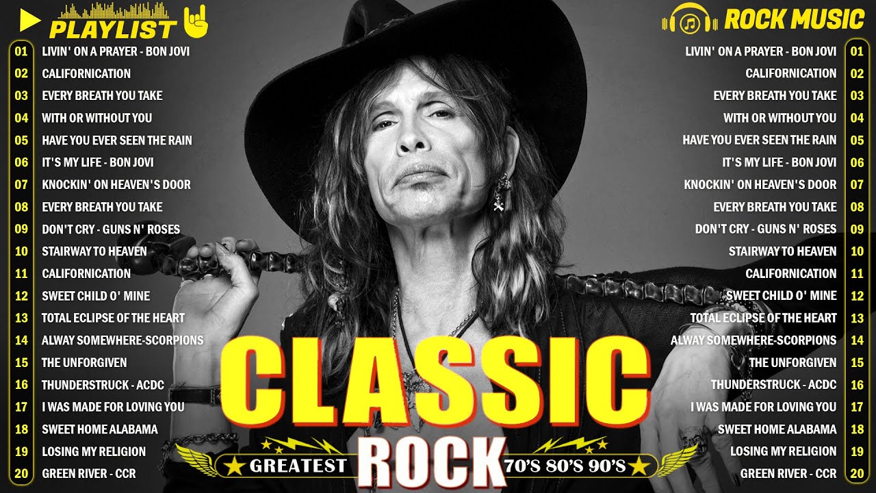 Aerosmith, Nirvana, Guns N Roses, ACDC, Queen, Bon Jovi, Scorpions – Classic Rock Songs 70s 80s 90